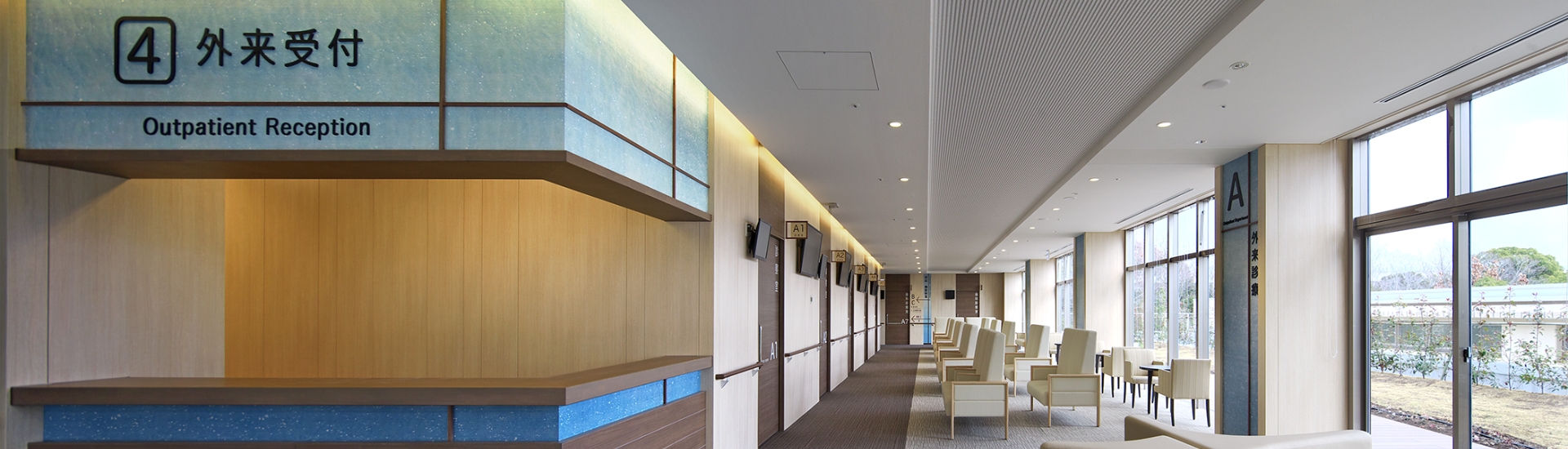 2階総合受付にお越しください。「診療申込票」に必要事項をご記入のうえ、「健康保険証またはマイナ保険証」、「(老人)医療受給者証」、「紹介状」などを提出してください。